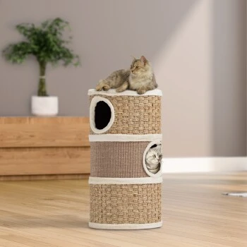 AniOne sorgt für Freude und Abwechslung im Alltag Ihrer Vierbeiner. Die robuste Kratztonne hat insgesamt 4 Ebenen. 3 Höhlen laden zum Zurückziehen, Schlafen und Ausruhen ein. Weich gepolsterte Kissen sorgen für einen hohen Liegekomfort. Große Kratzflächen bieten Raum für grenzenloses Kratzvergnügen.