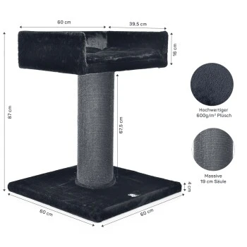 Die Residenz von CanadianCat ist für große und kleine Katzen gleichermaßen geeignet. Die erhöhte Position ermöglicht einen optimalen Überblick über das Zuhause und ist kuschelig weich. Die große und schwere Bodenplatte der Residenz, garantiert einen Festen stand, selbst wenn es mal etwas gröber zugeht. Die dicken Sisalsäule ist ideal zum Krallen wetzen und schont so ihre Möbel und Tapeten. An der Spitze befindet sich ein Kuschel weiches Bett mit passenden Kissen. Das Bett ist übrigens auch groß
