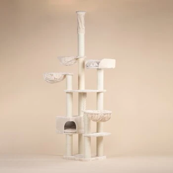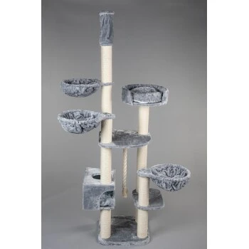 Dieser Kratzbaum in XXL ist ein extrem solider und stabiler, großer Kratzbaum mit extra verklebten, starkem 600g/m2 Plüsch.